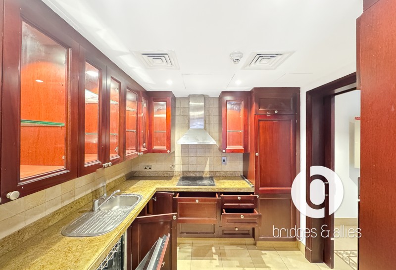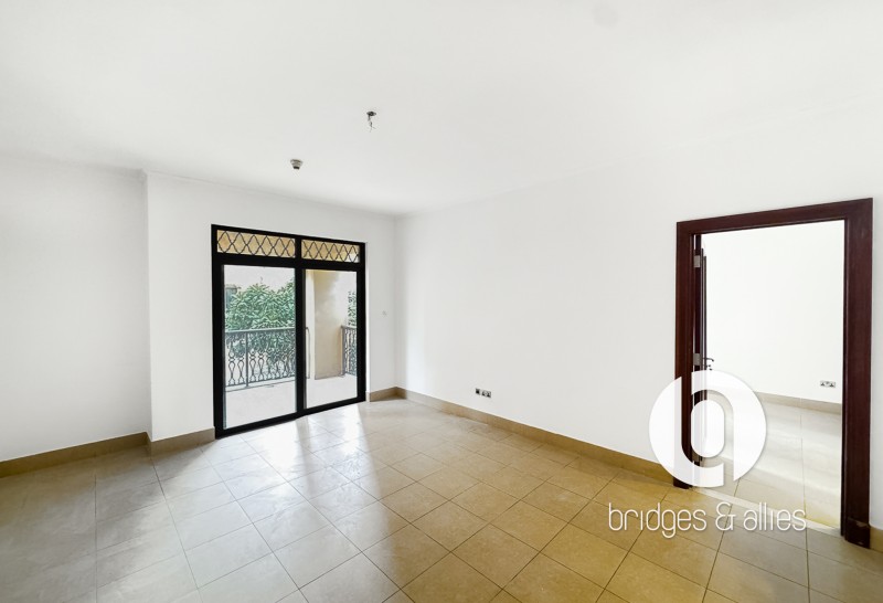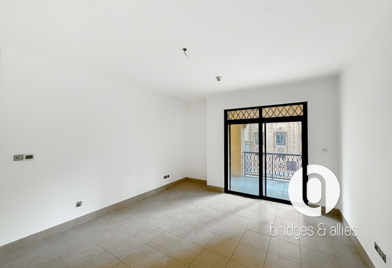 Bridges and Allies Real Estate Brokers proudly presents this bright and spacious 1-bedroom apartment located in the charming community of Old Town, Downtown Dubai. Designed with traditional Arabian architectural elements, the residence features high ceilings, symmetrical arches, elegant windows, and a large balcony ideal for outdoor relaxation.